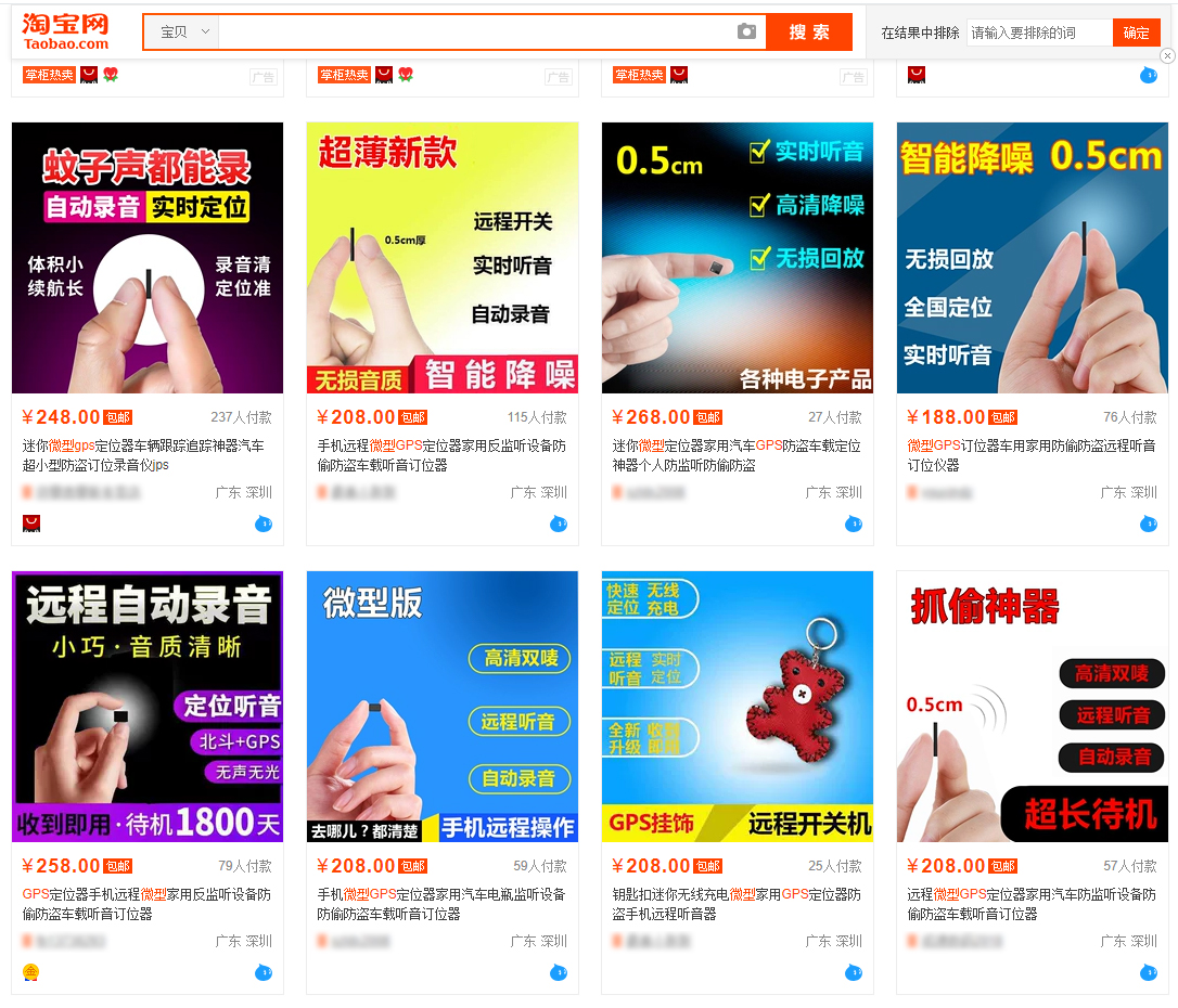 而自此,阿雅和她的朋友們才發(fā)現(xiàn),竊聽如今竟是件如此簡單的事情。低成本高回報(bào),不斷進(jìn)化的竊聽設(shè)備聽說購買很簡單,我們也依葫蘆畫瓢在淘寶網(wǎng)上搜索了一番,不搜不知道,如今的監(jiān)聽設(shè)備販賣,已經(jīng)到了明目張膽的地步。更離奇的是,我們購買詢問的過程中,沒有一名客服人員對幫尼菌的購買目的提出詢問,也沒有一家店鋪表示需要進(jìn)行個(gè)人身份信息驗(yàn)證。整個(gè)購買過程就像買日用品一樣輕松愜意。甚至幫尼菌在之后通過向淘寶舉報(bào)時(shí),竟然遭到了拒絕處理的回復(fù),而在這一切的背后,則是我國瘋狂運(yùn)轉(zhuǎn)的監(jiān)聽、盜攝產(chǎn)業(yè)鏈。